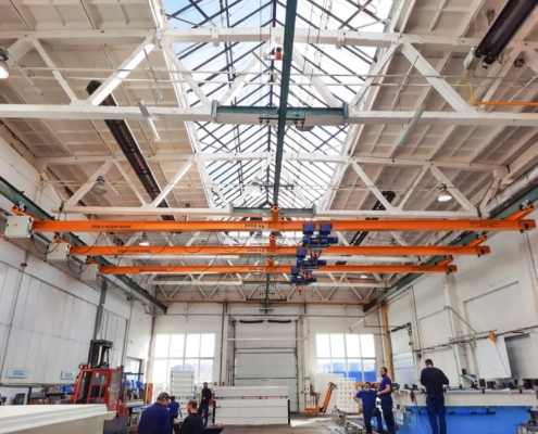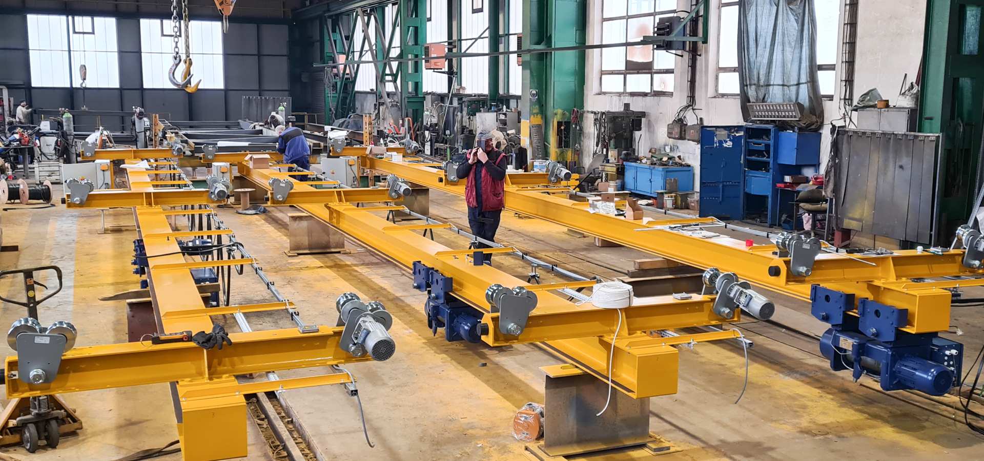 Mostové jeřáby jednonosníkové a dvounosníkové, portálové a poloportálové jeřáby, podvěsné jeřáby, jednonosníkové jeřáby s bočním vyložením, jeřáby mostové s otočnou kočkou, atypické jeřáby na zakázku, seníkové drapáky, montážní poklopy, nosníky mostových jeřábů, transport jeřábů.